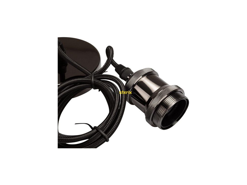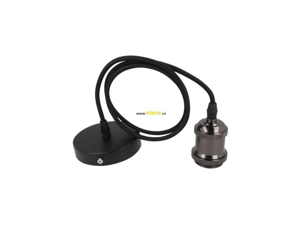 Závesné svietidlo - staromódny textilný kábel so staromódnou objímkou, pätica E27, farba čierna, dĺžka 100 cm.