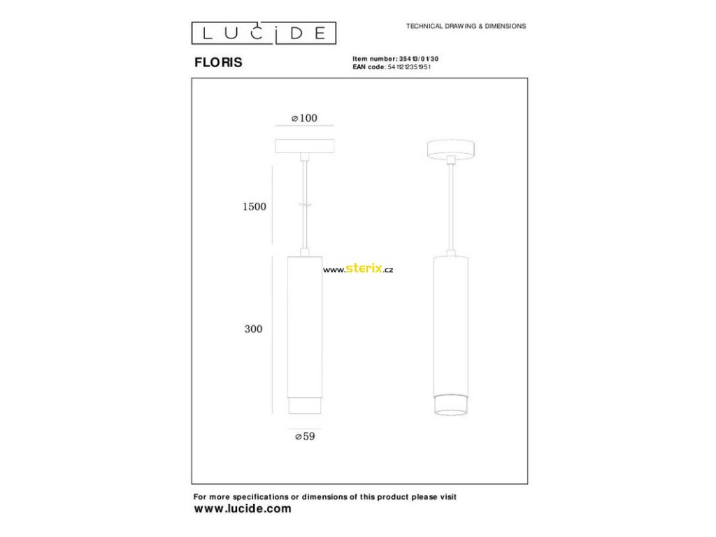 - Závesné svietidlo FLORIS LUCIDE 35413/01/30, moderný štýl, tvar valca