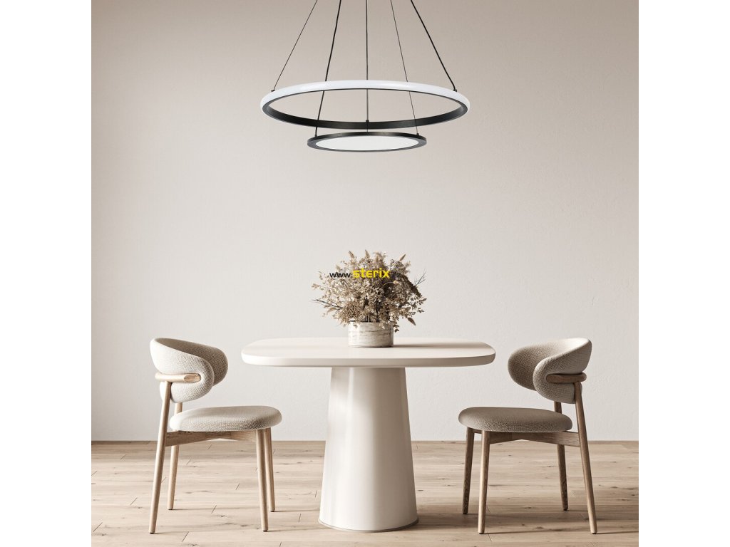 Závesné svietidlo Rabalux Jasero je odporúčané tým, ktorí si cenia nielen energetickú účinnosť, ale aj rozsiahlu funkčnosť. Toto moderné LED svietidlo je vyrobené s kovovou konštrukciou v čiernej farbe a bielym silikónovým tienidlom a má okrúhle tvary. Možno ho pripevniť k stropu pomocou malej okrúhlej dekoratívnej základne. Obsahuje vstavaný LED svetelný zdroj, ktorého teplotu farby je možné upravovať diaľkovým ovládačom alebo nástenným vypínačom. Okrem toho ponúka aj ďalšie inteligentné funkcie: pomocou diaľkového ovládača je možné nastaviť jas, funkciu pamäte a časovač a nechýba ani funkcia nočného svetla. Závesné svietidlo je ideálnou voľbou do obývacej izby, spálne alebo pracovne. Vďaka LED technológii sa vyznačuje energeticky úspornou prevádzkou a dlhou životnosťou.