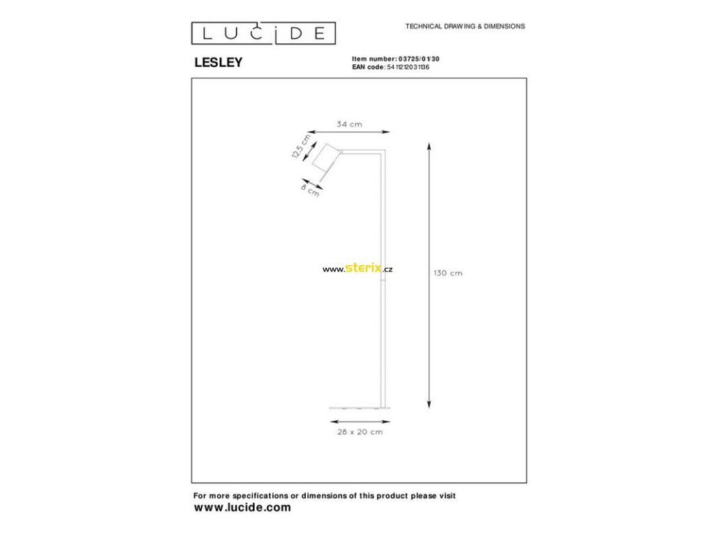 - LESLEY stojací lampa na čtení LUCIDE 03725/01/30, styl moderní, tvar rohový