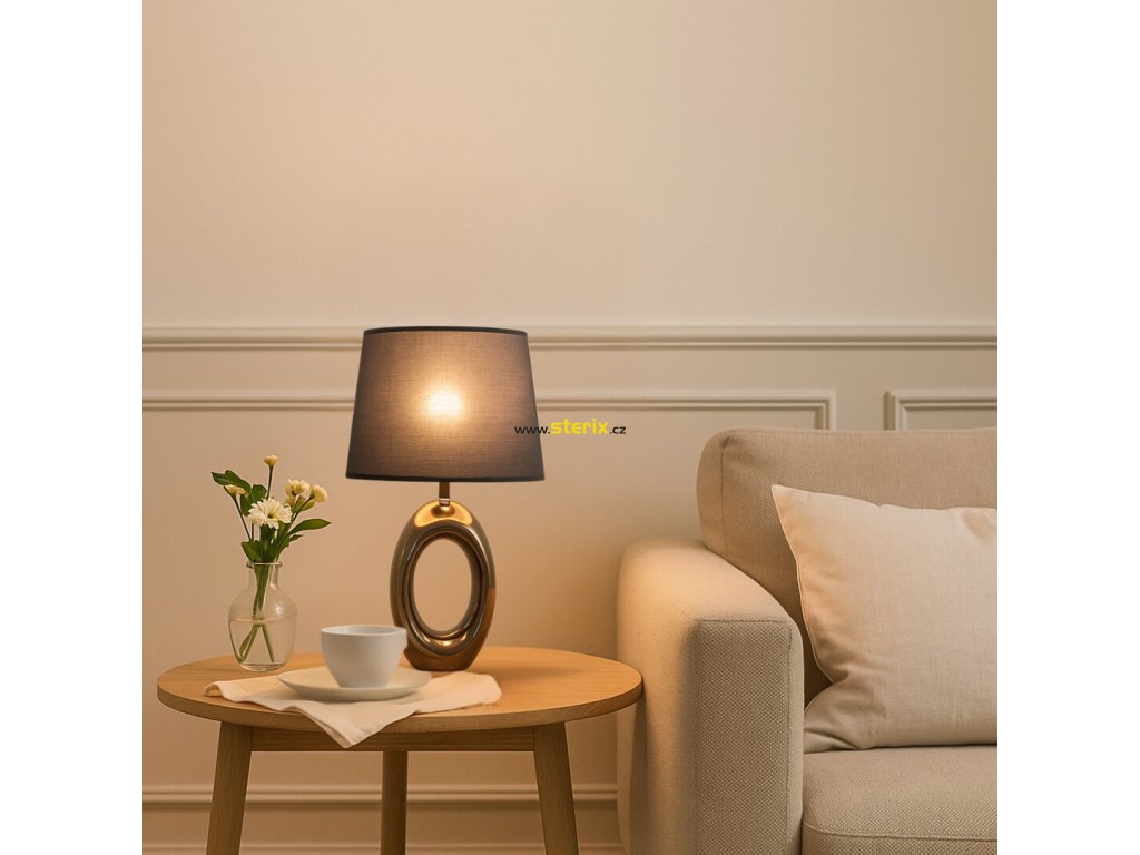 Stolní lampa Rabalux Dalora je doporučena těm, kteří mají rádi moderní svítidla s jedinečným designem. Tento výrazný model lze umístit do ložnice nebo obývacího pokoje. Má oválné tělo s otvorem uprostřed, vyrobené z keramiky v bronzové barvě. Stínidlo je černé, válcovitého tvaru, směrem dolů se mírně rozšiřuje a je vyrobeno z textilu. Světlo lze ovládat pomocí jedné žárovky s maximálním příkonem 25 W. Typ objímky je E14. Můžete si zvolit světelný zdroj s teplým nebo přirozeným bílým světlem. Díky tmavému stínidlu lampa poskytuje diskrétní osvětlení, takže je ideální volbou, pokud nechcete v noci rušit partnera ostrým světlem. Noční lampa je vybavena černým textilním kabelem a spínačem na kabelu. Dodává se bez světelného zdroje.- Rabalux 74063 stolní lampa DALORA, styl dekorační