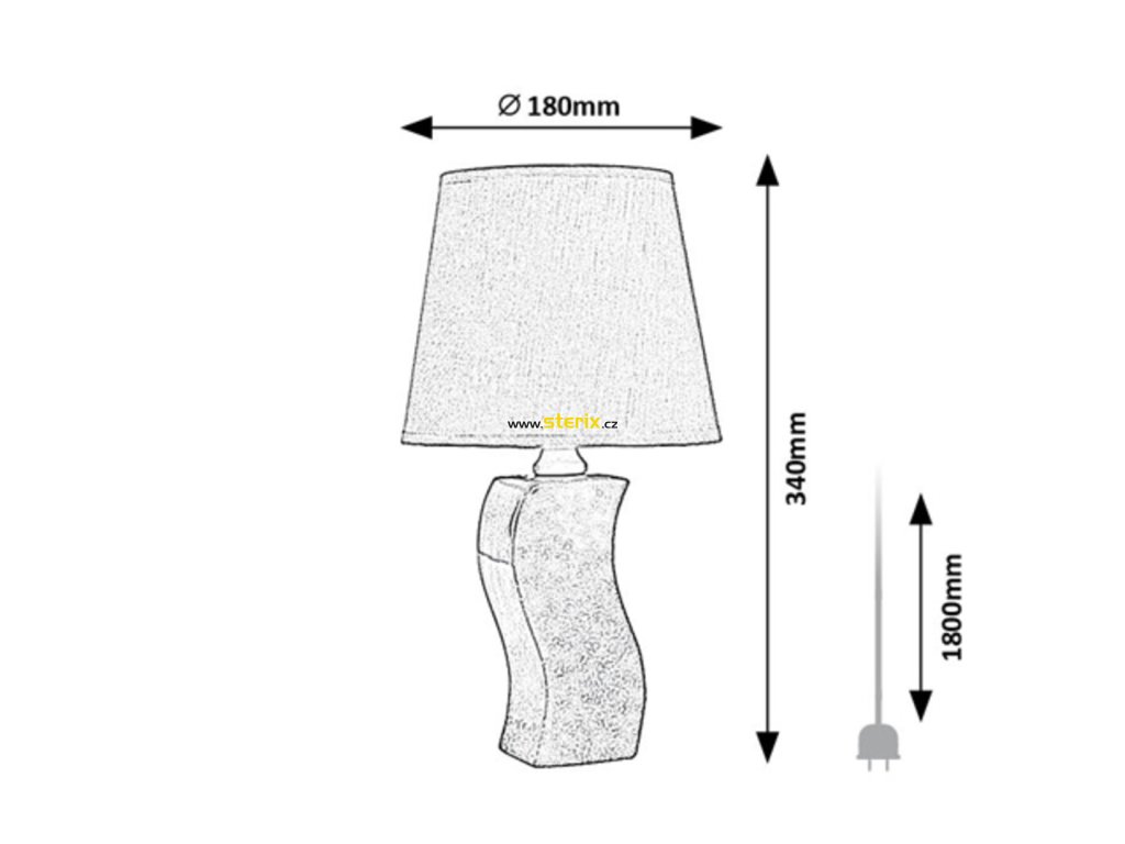 Noční lampa Rabalux Dayami je doporučena těm, kteří hledají doplňkové svítidlo s atraktivním vzhledem, které lze snadno začlenit do různých typů interiérů. Toto moderní stolní svítidlo je ideální do ložnice, obývacího pokoje nebo pracovny. Lze jej umístit na noční stolek, nižší odkládací stolek nebo pracovní stůl. Tělo lampy má tvar písmene S a je vyrobeno z šedé keramiky. Stínidlo je z textilu v podobném barevném odstínu. Má jemně se rozšiřující tvar směrem dolů a je otevřené shora i zdola. Stolní lampu lze používat s jednou žárovkou s maximálním příkonem 40W. Typ objímky je E14. Pro použití v ložnici se doporučuje zvolit žárovku s teplým bílým světlem. Noční světlo se ovládá pomocí spínače na kabelu. Dodává se bez světelného zdroje.- Rabalux 74073 stolní lampa DAYAMI, styl dekorační