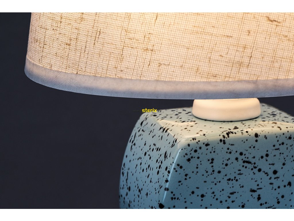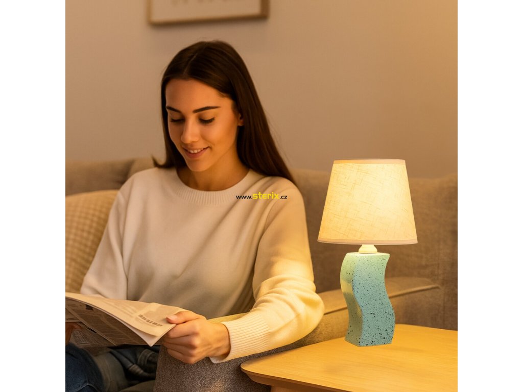 Noční lampa Rabalux Dayami je doporučena těm, kteří mají rádi dekorativní a barevně výrazná doplňková svítidla. Toto moderní stolní svítidlo je ideální volbou do obývacího pokoje, ložnice nebo pracovny. Může se stát poutavým prvkem na stole, psacím stole nebo nočním stolku. Tělo lampy je vyrobeno z modré keramiky a má tvar písmene S. Stínidlo je z béžové textilie, směrem dolů se mírně rozšiřuje a je otevřené shora i zdola. Stolní lampu lze používat s jednou žárovkou s maximálním příkonem 40W. Typ objímky je E14. Pro použití v ložnici se doporučuje zvolit žárovku s teplým bílým světlem, které podporuje relaxační atmosféru. Noční světlo se ovládá pomocí spínače na kabelu. Dodává se bez světelného zdroje.- Rabalux 74074 stolní lampa DAYAMI, styl dekorační
