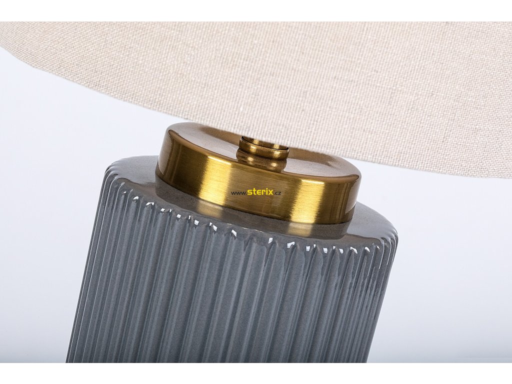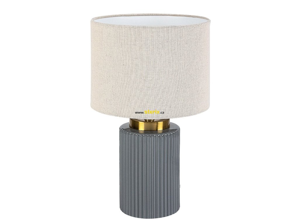 Stolní lampa Rabalux Glovy je doporučena těm, kteří hledají pečlivě navržené doplňkové svítidlo do ložnice nebo obývacího pokoje. Díky svému decentnímu barevnému provedení lze tento model snadno začlenit do různých typů interiérů. Můžete ji umístit na noční stolek nebo na stůl. Tělo lampy je vyrobeno ze šedé keramiky s rýhovaným vzorem, stínidlo je z bílého textilu. Stínidlo má válcový tvar a je otevřené shora i zdola. Díky světlé barvě propouští model hodně světla, a proto jej lze využít i jako lampu na čtení. Lampa funguje s jednou žárovkou s maximálním příkonem 40 W. Typ objímky je E14. Noční svítidlo je doplněno černým textilním kabelem a spínačem na kabelu. Dodává se bez světelného zdroje.- Rabalux 74045 stolní lampa GLOVY, styl moderní
