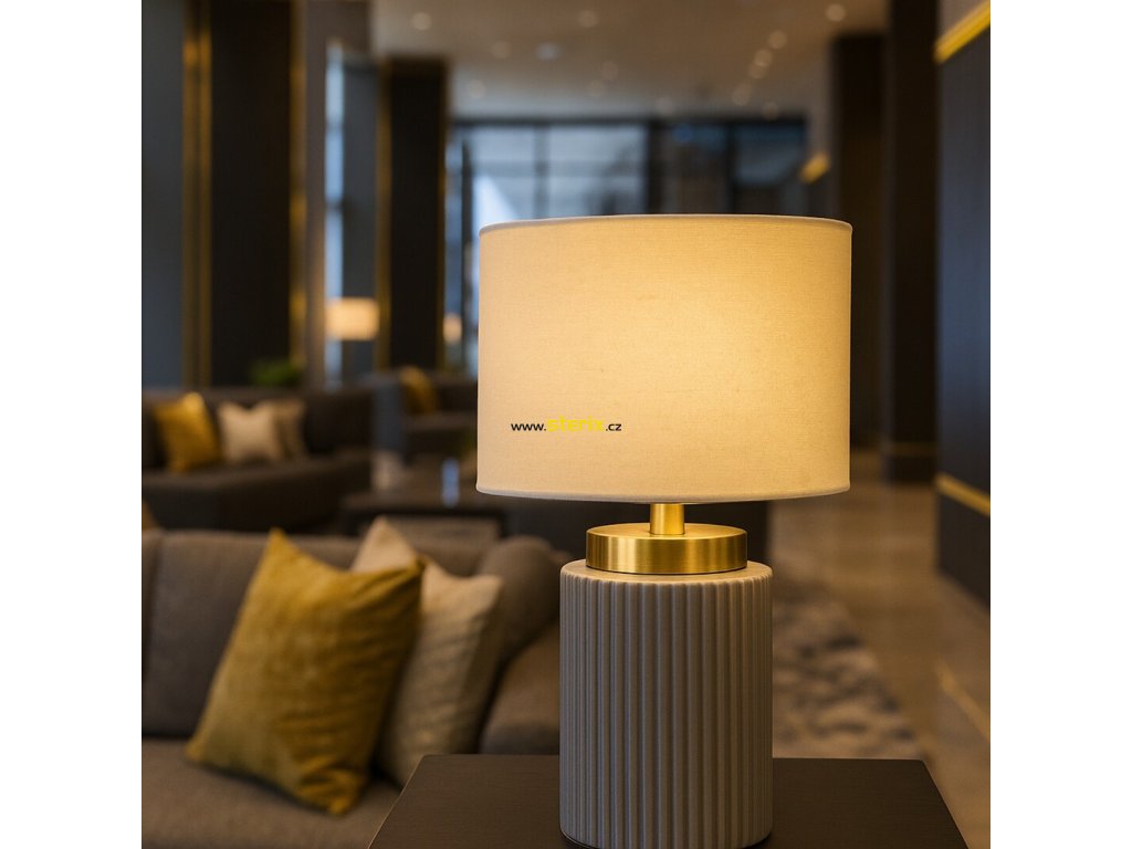 Moderní stolní lampička INGRID vyrobena z keramiky a tkaniny. Příkon klasické...