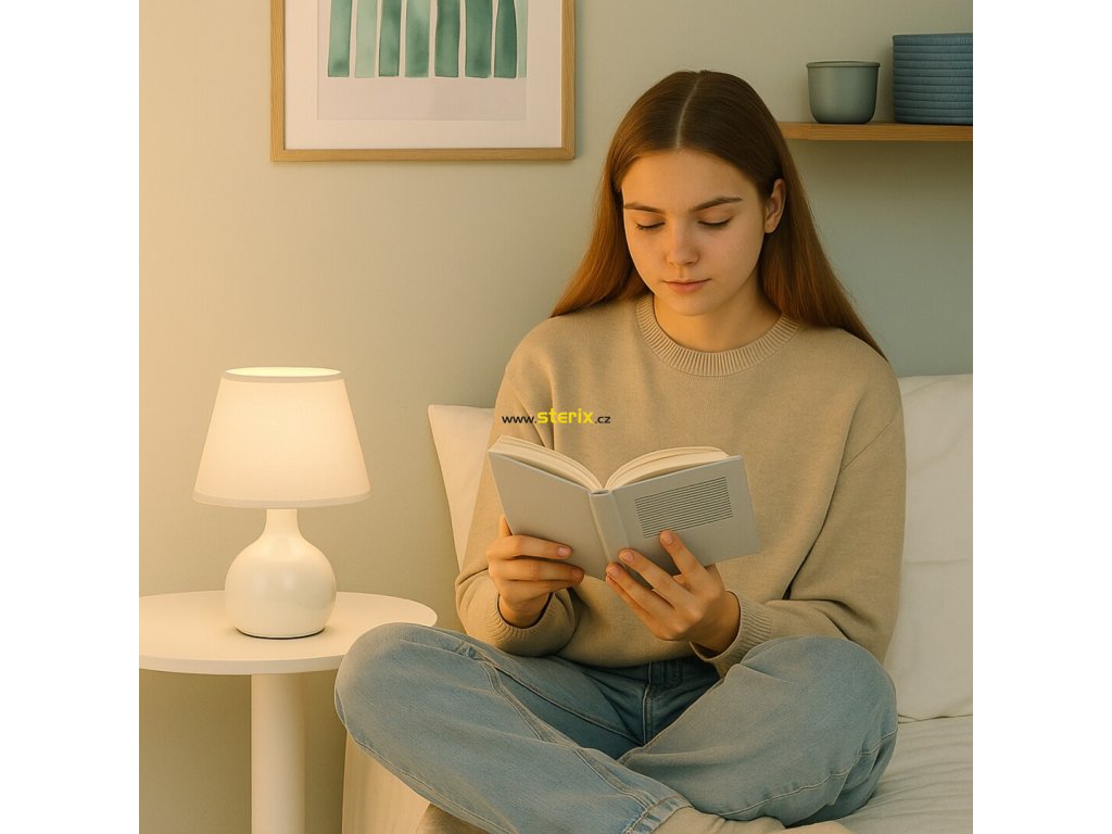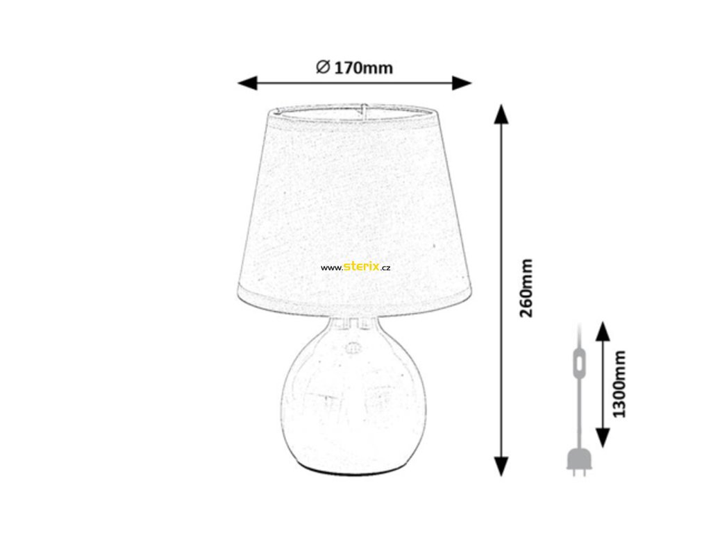 Stolní lampa Rabalux Ingrid je doporučena těm, kteří hledají univerzální doplňkové svítidlo, jež lze snadno začlenit do různých typů interiérů. Tento střídmý model je ideální do ložnice, pracovny nebo obývacího pokoje – lze jej umístit na stůl nebo noční stolek. Tělo lampy je vyrobeno z béžové keramiky, stínidlo je z textilu ve stejném barevném odstínu. Stínidlo se směrem dolů mírně rozšiřuje a je otevřené shora i zdola. Díky světlé barvě propouští velké množství světla, takže je tento model vhodný i jako čtecí lampa. Lze jej používat s jednou žárovkou s maximálním příkonem 40 W. Typ objímky je E14. Noční světlo se ovládá pomocí spínače na kabelu. Dodává se bez světelného zdroje.- Rabalux 74076 stolní lampa INGRID, styl dekorační