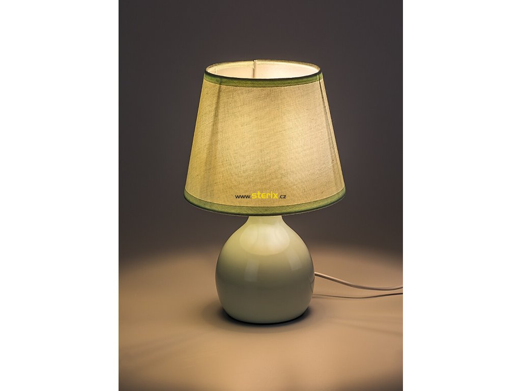 Stolní lampa Rabalux Ingrid je doporučena těm, kteří hledají univerzální doplňkové svítidlo, které lze snadno začlenit do široké škály interiérů. Tento decentní model je ideální do ložnice, pracovny nebo obývacího pokoje – lze jej umístit na stůl nebo noční stolek. Tělo lampy je vyrobeno ze světle zelené keramiky, stínidlo je z textilu ve stejné barvě. Stínidlo se směrem dolů mírně rozšiřuje a je otevřené shora i zdola. Díky světlé barvě propouští poměrně velké množství světla, takže je tato lampa vhodná i pro pracovní využití. Lze ji používat s jednou žárovkou s maximálním příkonem 40 W. Typ objímky je E14. Noční lampa se ovládá pomocí spínače na kabelu. Dodává se bez světelného zdroje.- Rabalux 74077 stolní lampa INGRID, styl dekorační