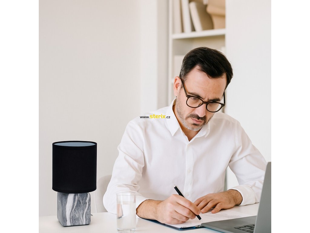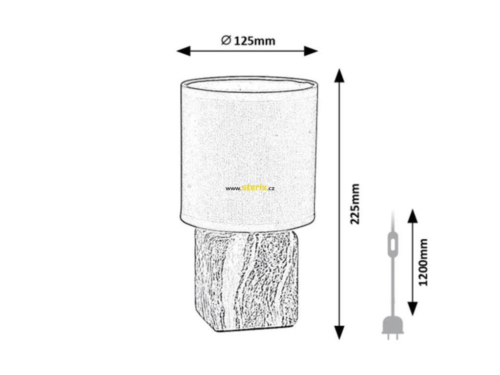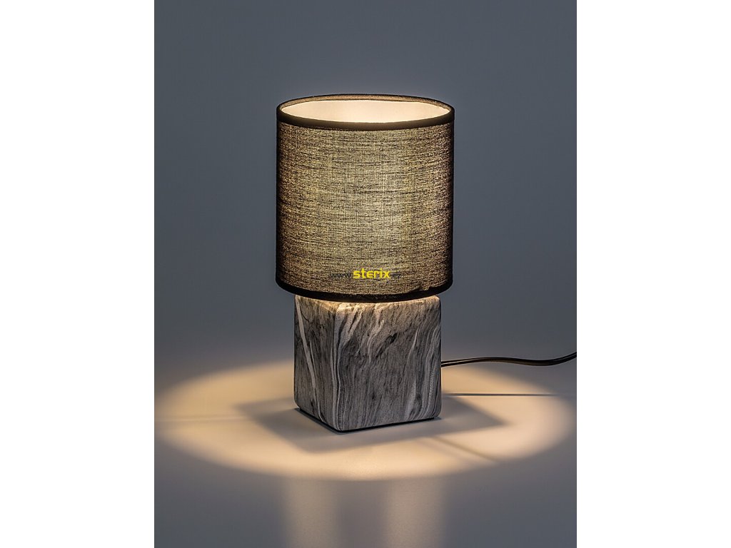 Stolní lampa Rabalux Nalisa je doporučena těm, kteří hledají moderní, kompaktní doplňkové svítidlo. Tento model kombinuje oblý a hranatý tvar s materiály s přírodním vzhledem: je vyroben z keramického bloku s šedobílým mramorovým efektem a doplněn černým textilním válcovým stínidlem, které je otevřené shora i zdola. Je ideální do ložnice nebo obývacího pokoje, umístěná na nočním stolku nebo stole. Tmavé stínidlo poskytuje diskrétní osvětlení, takže je tato stolní lampa skvělou volbou, pokud si potřebujete v noci rozsvítit, aniž byste rušili svého partnera. Lampa funguje s jednou žárovkou s maximálním příkonem 40 W. Typ objímky je E14. Keramická noční lampa je vybavena černým kabelem a spínačem na kabelu. Dodává se bez světelného zdroje.- Rabalux 74068 stolní lampa NALISA, styl moderní
