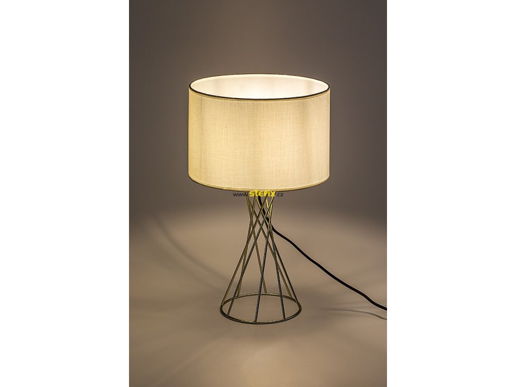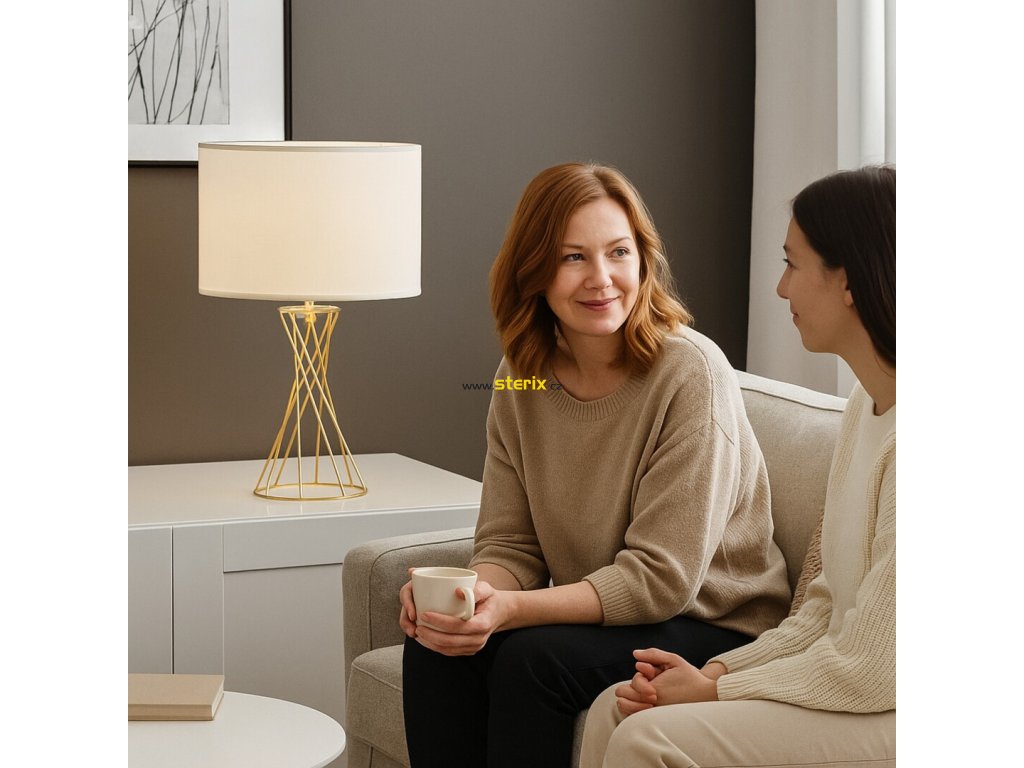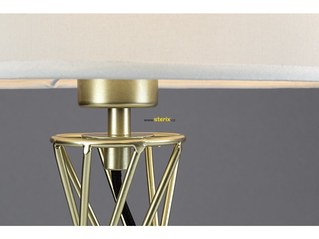 Stolní lampa Rabalux Nivra je ideální volbou pro ty, kteří hledají kreativní design, ale zároveň moderní a elegantní doplňkové osvětlení. Tento model je vyroben v atraktivní kombinaci zlaté a bílé barvy, stojí na kovových nožkách, které společně vytvářejí kuželovitý tvar a končí kruhovou základnou. Stínidlo lampy má válcový tvar, je otevřené nahoře i dole a je vyrobeno z bílé textilie. Noční lampička je doporučena především do ložnice a obývacího pokoje. Je určena pro jednu žárovku s výkonem maximálně 40 W. Patice žárovky je typu E27. Jelikož světlé stínítko propouští hodně světla, tento model je vhodný také ke čtení. Stolní lampa je doplněna černým textilním kabelem a kabelovým vypínačem. Dodává se bez světelného zdroje.- Rabalux 74081 stolní lampa NIVRA, styl dekorační