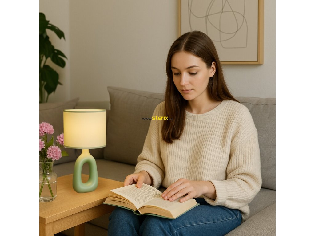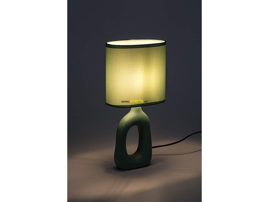 Stolní lampa Rabalux Sylira je doporučena těm, kteří hledají jedinečné a barevné doplňkové svítidlo do obývacího pokoje nebo ložnice. Toto moderní noční světlo se vyznačuje keramickým tělem s otvorem uprostřed, vyrobeným ze zelené keramiky. Stínidlo je válcovitého tvaru, otevřené shora i zdola, a je vyrobeno ze zeleného textilu. Stolní lampu lze používat s jednou žárovkou s maximálním příkonem 40 W. Typ objímky je E14. Podle vlastního vkusu si můžete zvolit světelný zdroj s teplým nebo přirozeným bílým světlem. Pokud lampu umístíte do ložnice, doporučuje se použít žárovku s teplým bílým světlem, která napomáhá vytvořit relaxační atmosféru. Lze ji umístit na noční stolek nebo na jakýkoli stůl. Noční svítidlo se ovládá pomocí spínače na kabelu. Dodává se bez světelného zdroje.- Rabalux 74071 stolní lampa SYLIRA, styl moderní