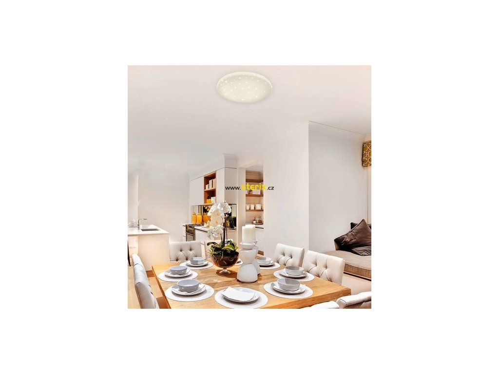 Díky mnoha dalším vlastnostem stropního svítidla Danny s třpytivým efektem je to skvělá volba pro ty, kteří nejsou spokojeni s průměrným svítidlem. Moderní bílý model je vyroben z kovu a plastu a má vestavěný zdroj světla LED. Spotřeba energie světelného zdroje je 80 W, jeho světelná intenzita je 6400 lumenů a jeho životnost je 30 000 hodin. Barevná teplota svítidla se podle potřeby může pohybovat od 3 000 do 6 500 K. To znamená, že může osvětlit danou místnost teplým bílým, přirozeným bílým nebo studeným bílým světlem. Svítidlo Danny je také stmívatelné, což znamená, že jeho jas lze nastavit podle přání a má také funkci časovače. Doporučujeme vám, aby ste toto skvělé stropní svítidlo použili ve svém obývacím pokoji, ložnici nebo dokonce na chodbě. Dálkově ovládané, kulaté svítidlo má průměr 800 mm a vzdálenost 100 mm od stropu. Na stropní svítidlo Danny se poskytuje záruka 5 let.