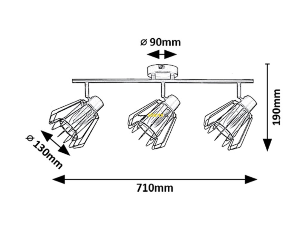 Stropní bodové svítidlo Rabalux Emerencia se třemi žárovkami je doporučeno těm, kteří mají rádi jedinečně vypadající svítidla v industriálním stylu. Tento model je vyroben z kovu v černé barvě a obsahuje otevřená kovová stínidla s tyčovou konstrukcí. Uvnitř světelných prvků se nacházejí válcová kouřová skleněná stínidla, která jsou obklopena vnějšími stínidly ve tvaru písmene A. Bodové svítidlo lze připevnit ke stropu pomocí malé kulaté dekorativní základny, ke které je připojena válcová nosná tyč držící všechny tři světelné prvky. Stropní svítidlo je ideální volbou do obývacího pokoje, kuchyně, jídelny nebo ložnice. Lze jej použít se třemi světelnými zdroji, každý o výkonu až 40 W. Typ objímky je E14. Bodové svítidlo je vybaveno praktickými flexibilními hlavami, díky nimž lze směr světla přizpůsobit podle potřeby a efektivně osvětlit místnost. Tento model se dodává bez světelných zdrojů.