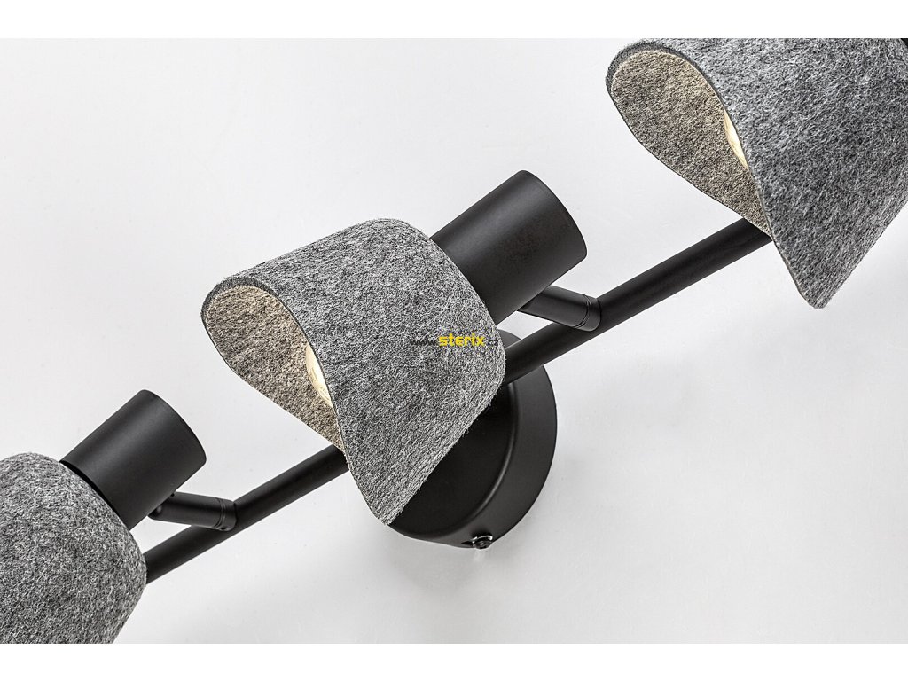 Stropní bodové svítidlo Rabalux Farelia se čtyřmi žárovkami je doporučeno těm, kteří hledají svítidlo s jedinečným vzhledem pro svůj moderní domov, které zároveň přispívá k útulné atmosféře. Tento model je vyroben z kovu v černé barvě se šedými plstěnými stínidly a lze jej připevnit ke stropu pomocí malé kulaté dekorativní základny. Plstěný materiál stínidel je ekologicky šetrný a vyrobený z recyklovaných materiálů. Světelné prvky drží dlouhá válcová tyč. Zakřivený tvar zvonkovitých stínidel spolu s měkkým plstěným materiálem dodává svítidlu příjemný a přívětivý vzhled. Je ideální volbou do obývacího pokoje, ložnice nebo pracovny. Lze jej použít se čtyřmi světelnými zdroji, každý o výkonu až 10 W. Typ objímky je E14. Bodové svítidlo je vybaveno flexibilními světelnými prvky, díky nimž lze směr světla přizpůsobit podle potřeby. Svítidlo se dodává bez světelných zdrojů.
