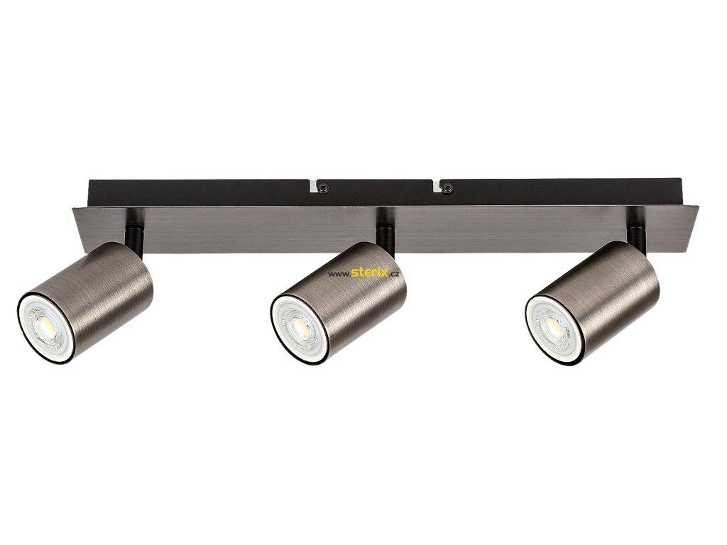 Stropní bodové svítidlo Rabalux Gerhard se třemi žárovkami je doporučeno těm, kteří preferují funkčnost a minimalistický styl. Tento model s válcovitými světelnými prvky je kompletně vyroben z kovu, což mu díky šedavě kovovému lesku dodává elegantní vzhled. Svítidlo lze připevnit ke stropu pomocí podlouhlé obdélníkové dekorativní základny. Světelné prvky jsou přímo připojeny k dekorativní základně a lze je otáčet, takže jejich světlo lze vždy nasměrovat podle aktuálních potřeb místnosti. Bodové svítidlo lze použít se třemi žárovkami, každou o výkonu až 15 W. Typ objímky je GU10. V závislosti na vašem vkusu si můžete vybrat světelné zdroje vyzařující teplé nebo přirozené bílé světlo. Stropní bodové svítidlo je ideální volbou do obývacího pokoje, ložnice nebo pracovny. Tento model se dodává bez světelných zdrojů.