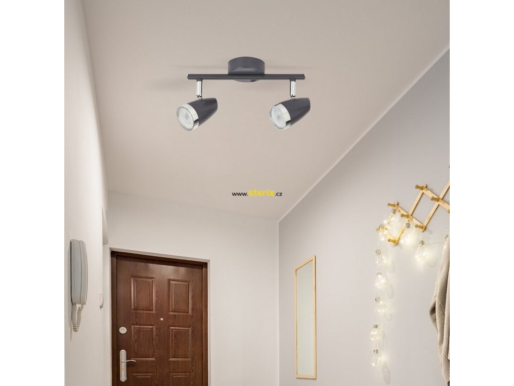 Dvojité LED stropní přisazené bodové svítidlo KAREN v moderním stylu, barvě černá stříbrná, příkon 2x4W, svítivost 560 lumenů bude stylovým kusem nábytku v obývacím pokoji, ložnici, jídelně nebo kuchyni.