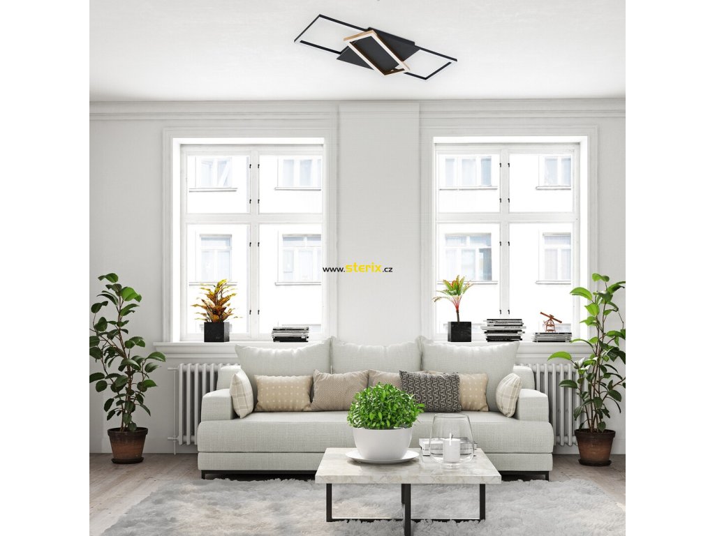 Stropní svítidlo Rabalux Kitlee je doporučeno těm, kteří kladou důraz na moderní a jedinečný vzhled i rozsáhlé funkce. Tento působivý model je vyroben z kovu ve stylové kombinaci černé a zlaté barvy s bílým plastovým stínidlem. Svítidlo se skládá ze čtvercových prvků a lze jej připevnit ke stropu pomocí velké čtvercové dekorativní základny. Obsahuje vestavěný LED světelný zdroj, jehož teplotu barvy lze upravovat dálkovým ovládáním nebo nástěnným vypínačem. Mezi další chytré funkce patří nastavitelný jas, paměť, časovač a noční osvětlení, přičemž všechny tyto funkce lze ovládat dálkovým ovladačem. Díky vysoké světelné intenzitě je toto stropní svítidlo ideální volbou pro větší obývací pokoj, jídelnu nebo ložnici. Díky LED technologii se vyznačuje energeticky úsporným provozem a dlouhou životností.