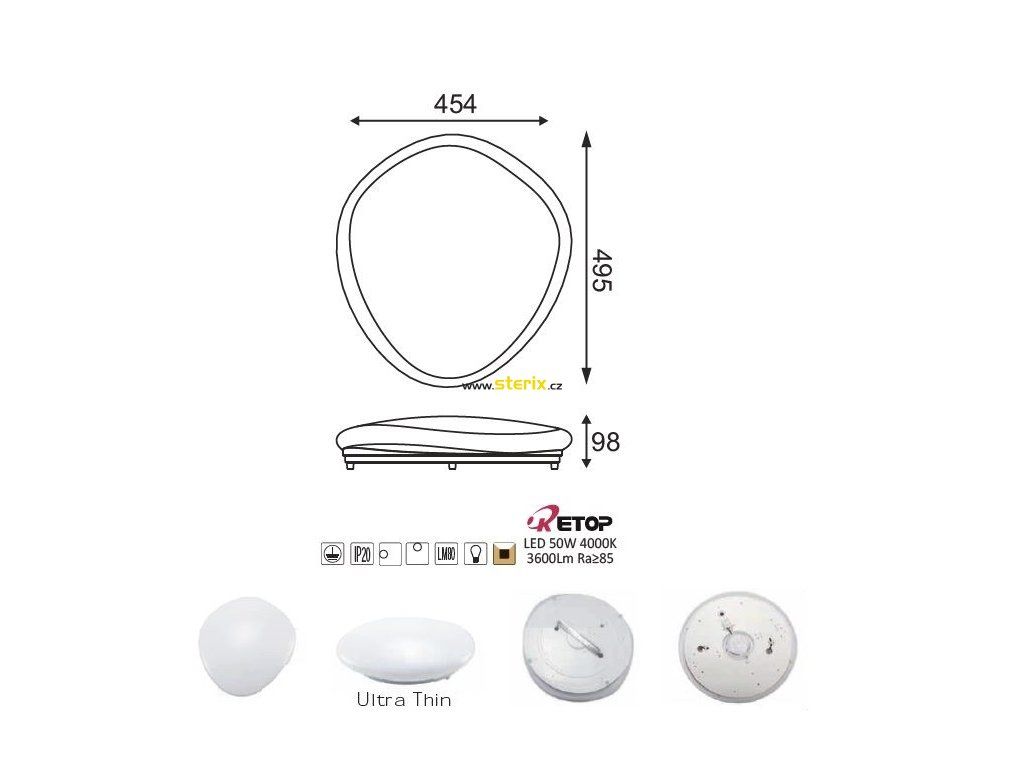 LED přisazené svítidlo STONE 50W/230V/4000K/3600Lm/180°/IP20, bílé