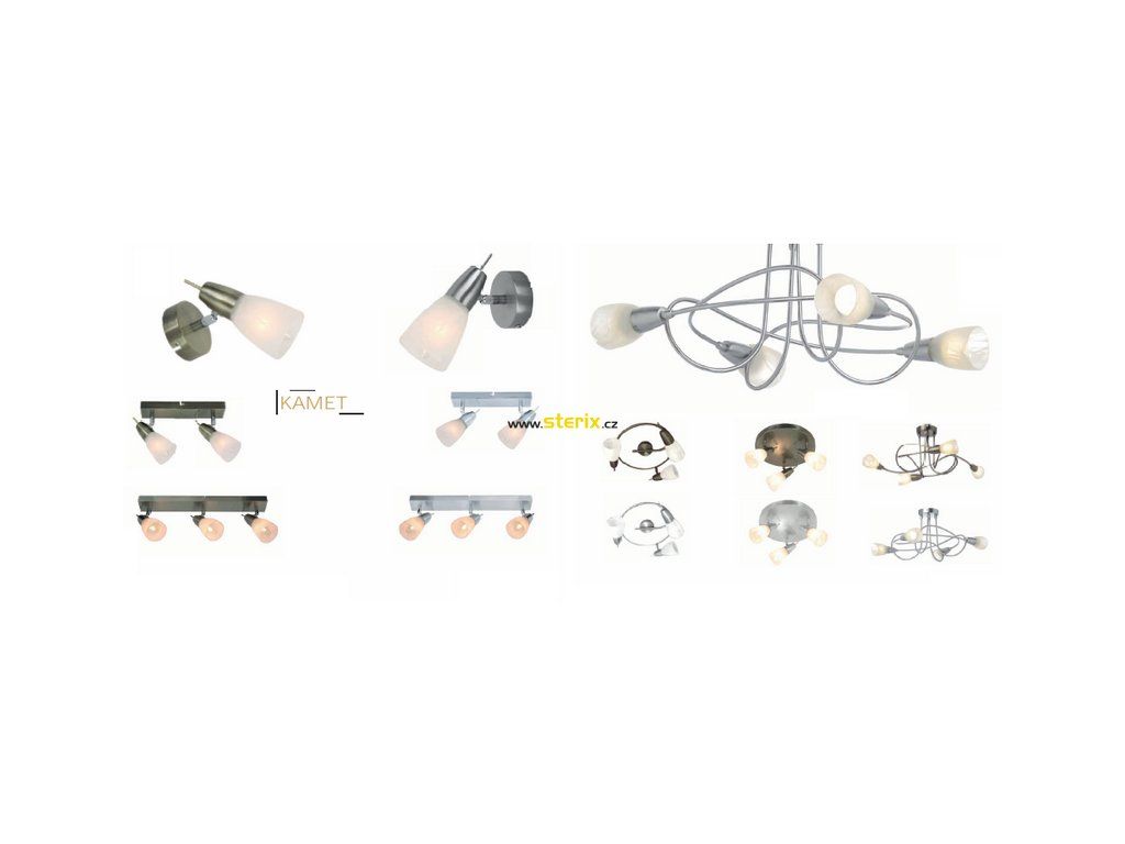 Přisazené stropní nebo nástěnné svítidlo KAMET, materiál kov, barva niklu a bílá, příkon klasického světelného zdroje max. 2x40W, 2x objímka pro patici E14, IP20.