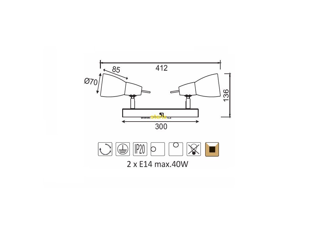 Přisazené bodové svítidlo KAMET max. 2x40W/E14/230V/IP20