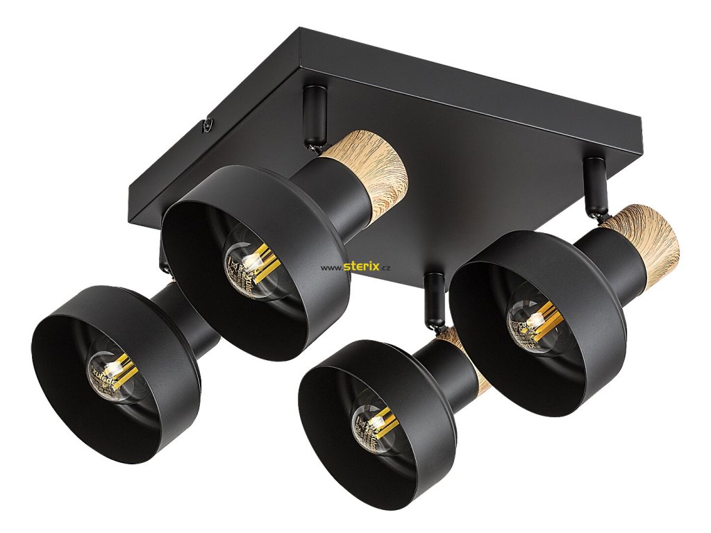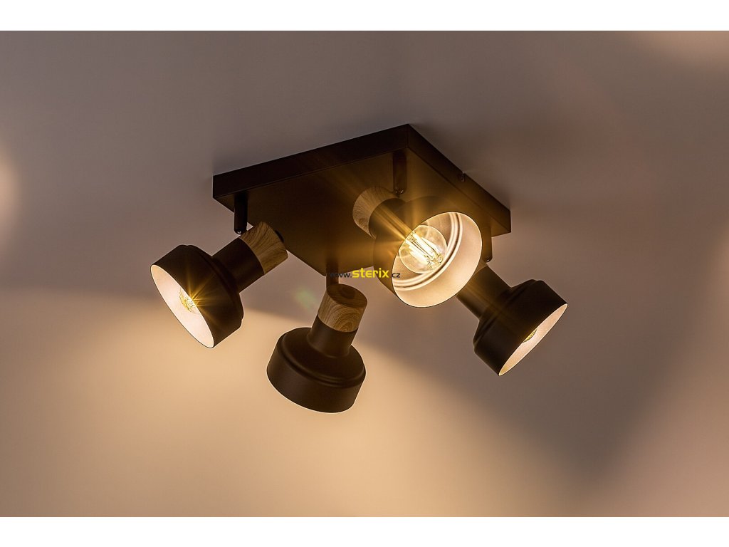 Stropní bodové svítidlo Rabalux Saskia se čtyřmi žárovkami je primárně doporučeno milovníkům severského stylu. Svítidlo je vyrobeno z kovu a dřeva v černé a dubové barvě. Elegantní tmavý tón konstrukce a dekorativní základny je narušen pouze dubovými krytkami, které dodávají svítidlu přírodní nádech. Vnitřní strana stínidel je zlatá, což skvěle ladí s přirozeným odstínem dřeva. Svítidlo lze připevnit ke stropu pomocí čtvercové dekorativní základny. Tento model je vybaven čtyřmi otočnými hlavami svítidel, díky nimž lze směr světla přizpůsobit podle potřeby. Stropní svítidlo je ideální volbou do obývacího pokoje, ložnice nebo pracovny. Lze jej použít se čtyřmi světelnými zdroji, každý o výkonu až 15 W. Typ objímky je E14. Bodové svítidlo se dodává bez světelných zdrojů.