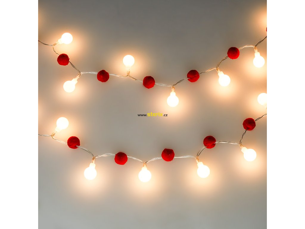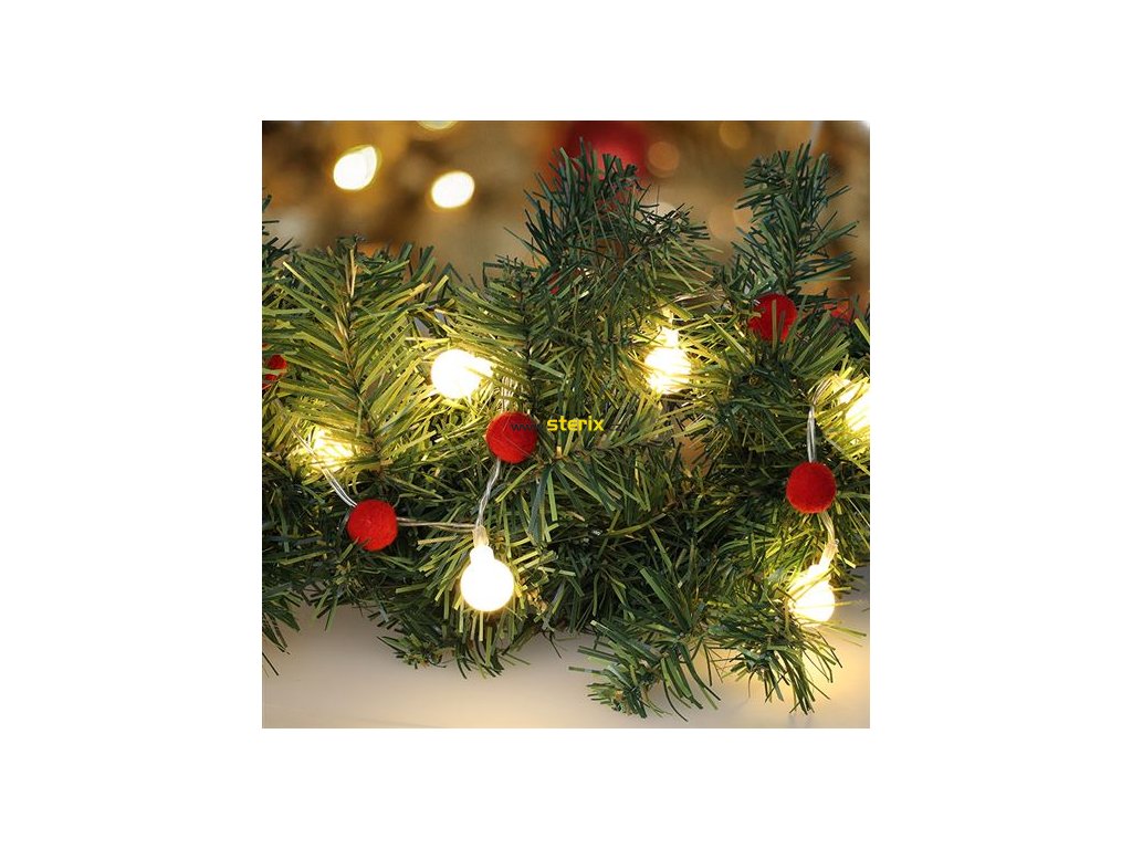 - vánoční dekorativní řetízek s červenými koulemi a LED diodami