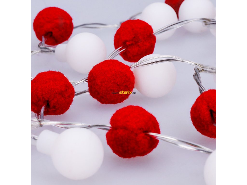LED vánoční řetízek červená-bílá, 20x LED, 1,5m, 2xAA