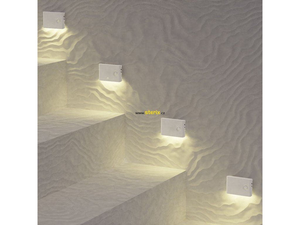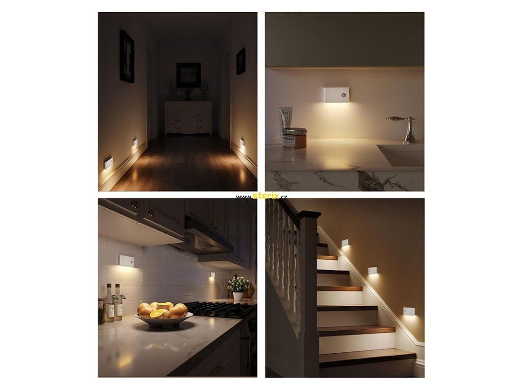 - nabíjecí noční světélko se světelným a pohybovým senzorem vhodné pro umístění na stěny, chodby, schodiště, do ložnic či dětských pokojů