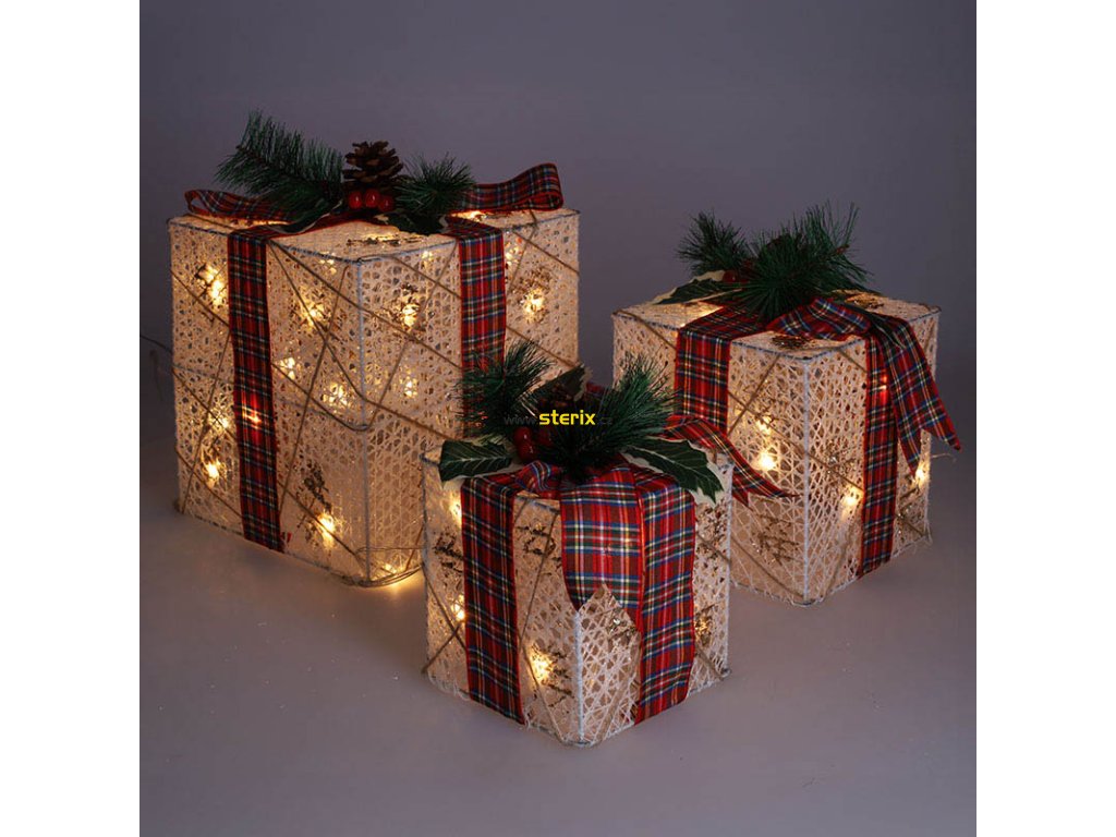 - Sada tří dekorativní vánočních dárků s LED diodami