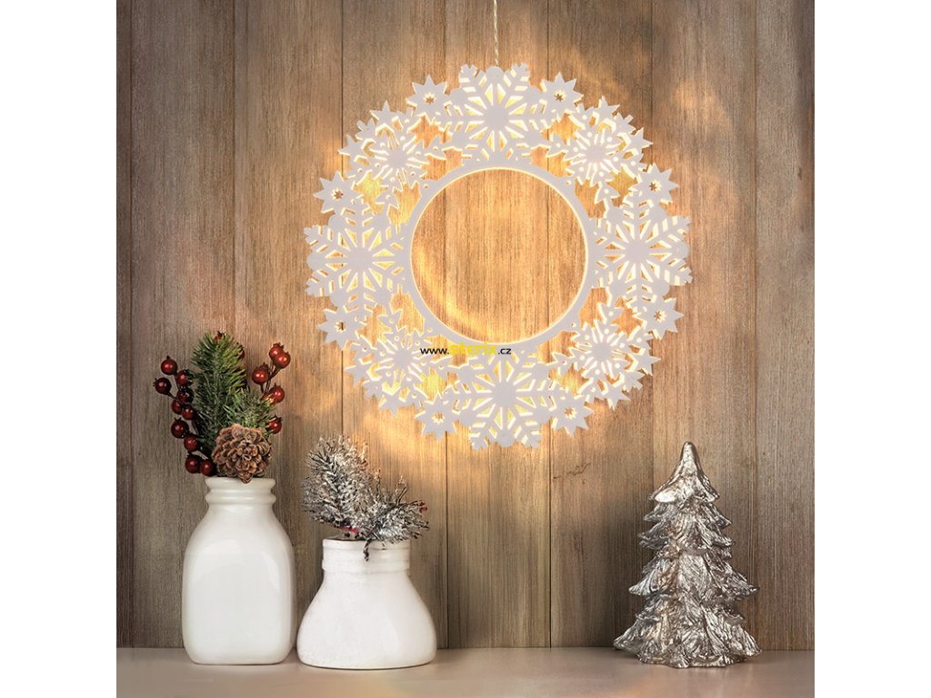 Věnec je osvětlen 10 LED diodami vyzařujícími teplé bílé světlo, které vytváří nádherný efekt. Díky praktické funkci časovače se automaticky vypne po 6 hodinách a opět se zapne po 18 hodinách, což zajistí pohodlné a energeticky úsporné používání.