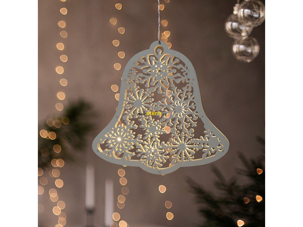 Zvoneček je vybaven 9 LED diodami s příjemným teplým bílým světlem, které vytváří kouzelný efekt. Díky praktickému časovači se automaticky vypne po 6 hodinách a znovu se zapne po 18 hodinách, což zajišťuje úsporné a pohodlné používání.