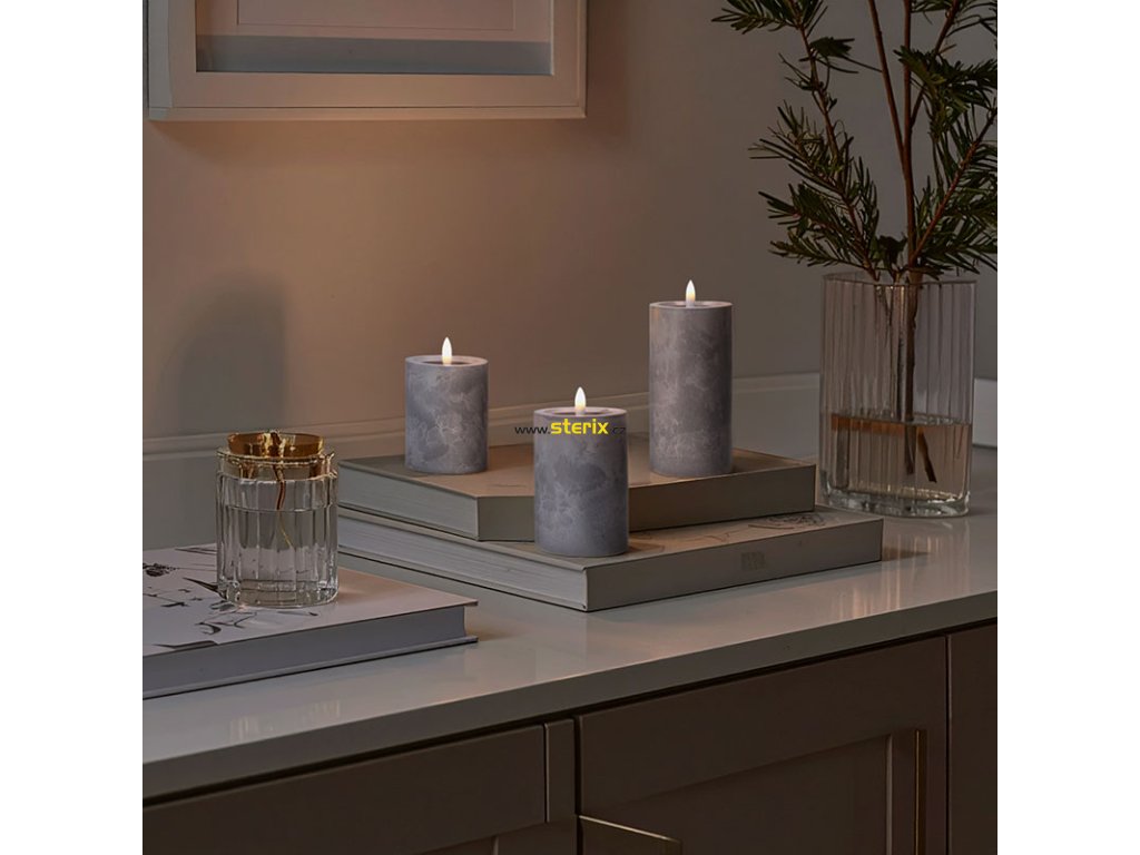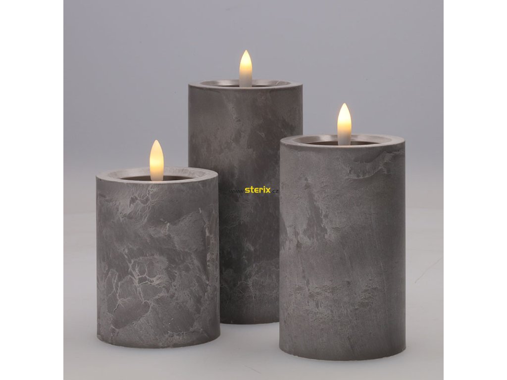- sada LED svíček s přirozeně blikajícím plamenem a dekorem šedého mramoru