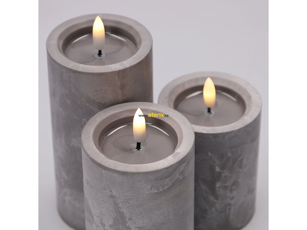 Sada 3 LED svíček s časovačem 10/13/15cm, šedá, 3xAA