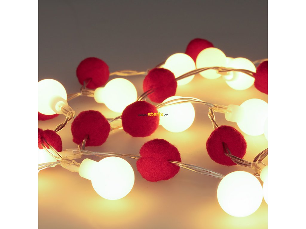 LED vánoční řetízek červená-bílá, 20x LED, 1,5m, 2xAA