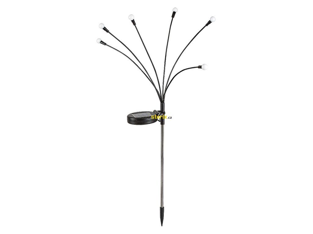 Solární zapichovací venkovní lampa Rábalux Tavira zaujme moderním černým plastovým tělem a bílými stínítky, které jsou elegantně umístěny na šesti jemně zakřivených ramenech. Výsledkem je lehké, dekorativní světelné efekty, které krásně oživí vaši zahradu. Lampa je vybavena vestavěným LED světlem, které se během dne nabíjí pomocí solárního panelu umístěného na vrchní části. Díky světelnému senzoru se při setmění automaticky zapíná, lze ji ovládat i ručně vypínačem.