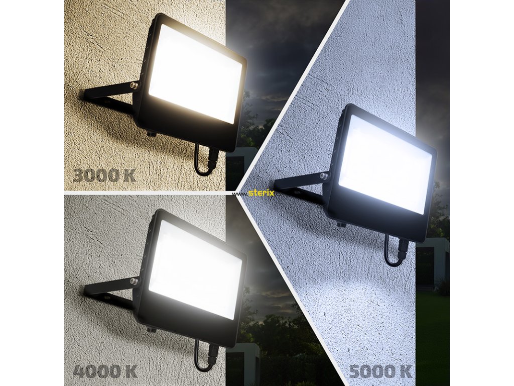 LED reflektor řady TOP s výkonem až 100W a světelným tokem 14 000 lm je navržen pro náročné aplikace, kde je potřeba vysoká intenzita světla. Pomocí přepínače si můžete zvolit také úspornější režimy na 75W (10 500 lm) nebo 50W (7000 lm), a to bez nutnosti výměny zařízení. Možnost přepínat mezi teplotami světla 3000K/4000K/5000K (teplá, neutrální, studená) přináší maximální přizpůsobení aktuálním podmínkám.