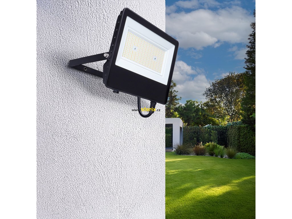 Krytí IP65 a voděodolný konektor umožňují venkovní použití i v náročných podmínkách. Reflektor je vybaven LED čipy s životností 25 000 hodin a poskytuje široký světelný kužel 120°, ideální pro rovnoměrné nasvícení plochy. Rozměry činí 320 × 230 × 30 mm, tělo je z odolného hliníku a elegantní černé barvy. Tento reflektor je robustní, flexibilní a efektivní řešení pro profesionální nasazení ve venkovních prostorách.