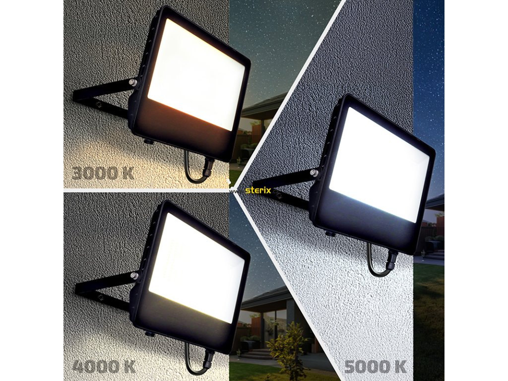 Nejvýkonnější model z řady TOP reflektorů nabízí masivní světelný výkon až 21 000 lm při plných 150W, což jej činí ideálním pro nasvícení velkých areálů, sportovišť nebo průmyslových zón. Díky přepínatelnému výkonu lze reflektor nastavit i na 110W (15 400 lm) nebo 70W (9 800 lm), čímž lze optimalizovat spotřebu elektrické energie. Možnost změny teploty světla v rozsahu 3000K–5000K přidává na univerzálnosti zařízení.