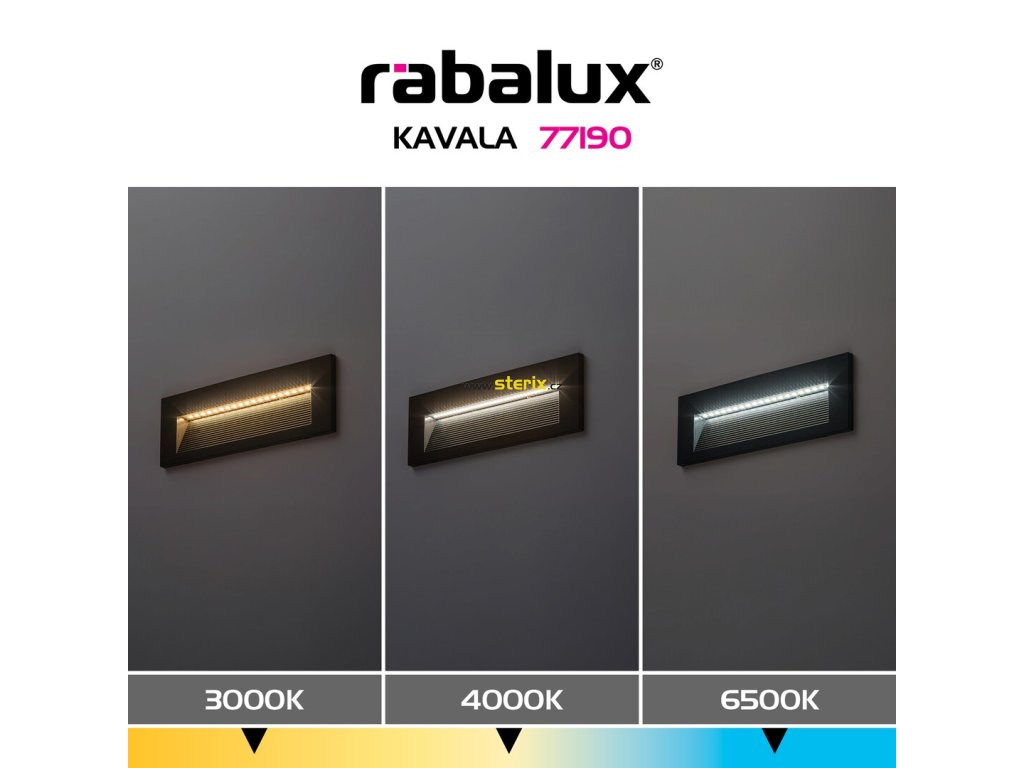 Zápustné nástěnné svítidlo Rábalux Kavala pro venkovní použití se pyšní čistým, moderním designem a poskytuje diskrétní, přesto dostatečně výrazné osvětlení schodů a průchozích prostor. Černý, odolný plastový rám a matný difuzor zajišťují směrované světlo bez oslnění, které zvyšuje bezpečnost pohybu po setmění a zároveň vytváří elegantní světelný pruh na zdi. Integrovaný LED světelný zdroj umožňuje pomocí CCT přepínače zvolit teplotu světla – teplou, neutrální nebo studenou bílou – a snadno tak přizpůsobit atmosféru okolí. Díky zápustnému provedení s nízkým výstupem splyne svítidlo harmonicky s fasádou a nabízí variabilní možnosti montáže. Je ideální volbou pro venkovní schodiště, vstupy, terasy nebo jako orientační osvětlení zahradních cest – a skvěle se osvědčí i jako moderní schodové osvětlení.