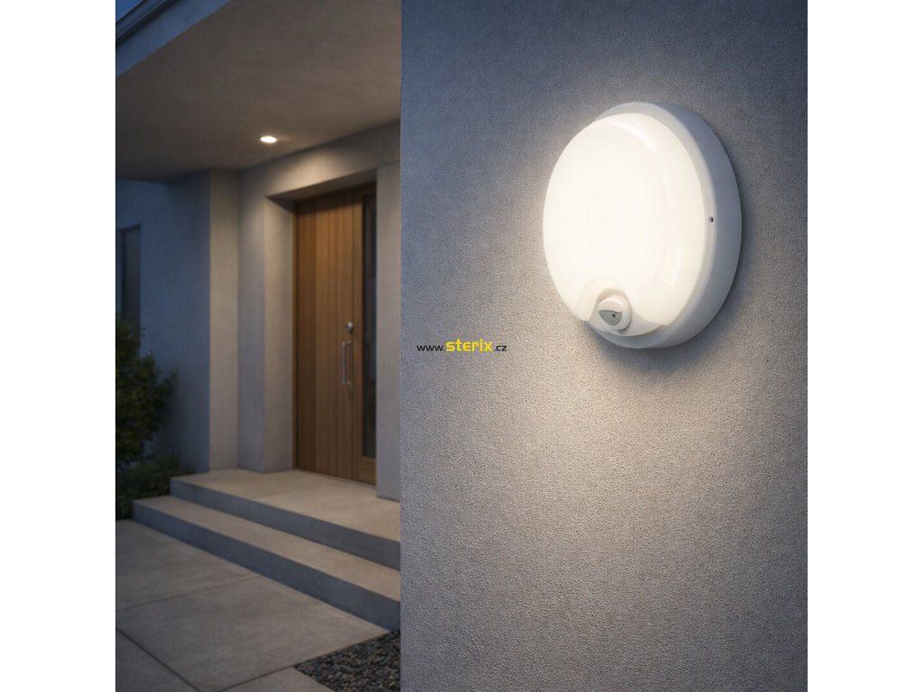 Venkovní svítidlo Rábalux Lonato se vyznačuje čistým, moderním designem a bílým plastovým stínidlem, které zajišťuje diskrétní a rovnoměrné osvětlení vstupu, garáže, terasy nebo balkonu. Vestavěný LED světelný zdroj nabízí energeticky úsporné osvětlení s minimálními nároky na údržbu. Integrovaný PIR pohybový senzor a soumrakový senzor automaticky aktivují svítidlo při zaznamenání pohybu za tmy, což zvyšuje bezpečnost i pohodlí užívání. Kulatý tvar a kompaktní tělo elegantně ladí s fasádou, bílá barva je ideální do každého moderního prostředí. Díky odolnému provedení vůči povětrnostním vlivům a možnosti montáže na stěnu nebo strop je toto svítidlo spolehlivou a dlouhodobou volbou.