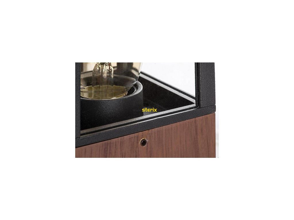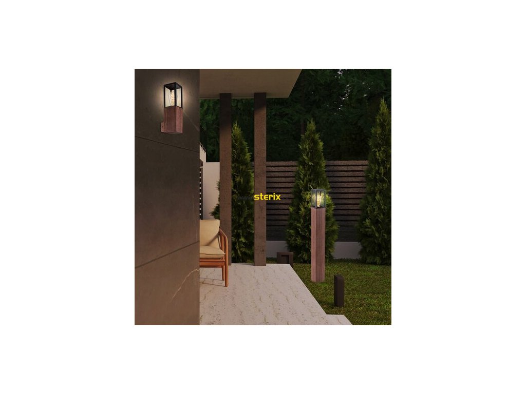 Venkovní nástěnné svítidlo Wales v moderním stylu vypadá obzvlášť dobře s dřevěnými doplňky na terase. Spodní část svítidla Wales se vzorem dřeva je vybavena průhledným skleněným stínítkem s matným černým rámem a svítidlo lze připevnit na stěnu pomocí prvku se vzorem dřeva, který vyčnívá ze spodní části. Samozřejmě, tento model můžete nainstalovat nejen na terasu, ale také jinde na vnější stěně domu: můžete osvětlit chodník vedoucí ke vchodu nebo kolem brány. Wales lze použít s jedním světelným zdrojem o výkonu do 60 W, typ patice E27. Rozměry vnějšího svítidla jsou následující: výška 310 mm, vzdálenost od stěny 120 mm, instalační průměr 65 mm. Krytí IP44 zaručuje, že svítidlo je chráněno proti vniknutí předmětů o průměru až 1 mm a proti stříkající vodě z jakéhokoli směru. Venkovní nástěnné svítidlo Wales se dodává bez světelného zdroje.