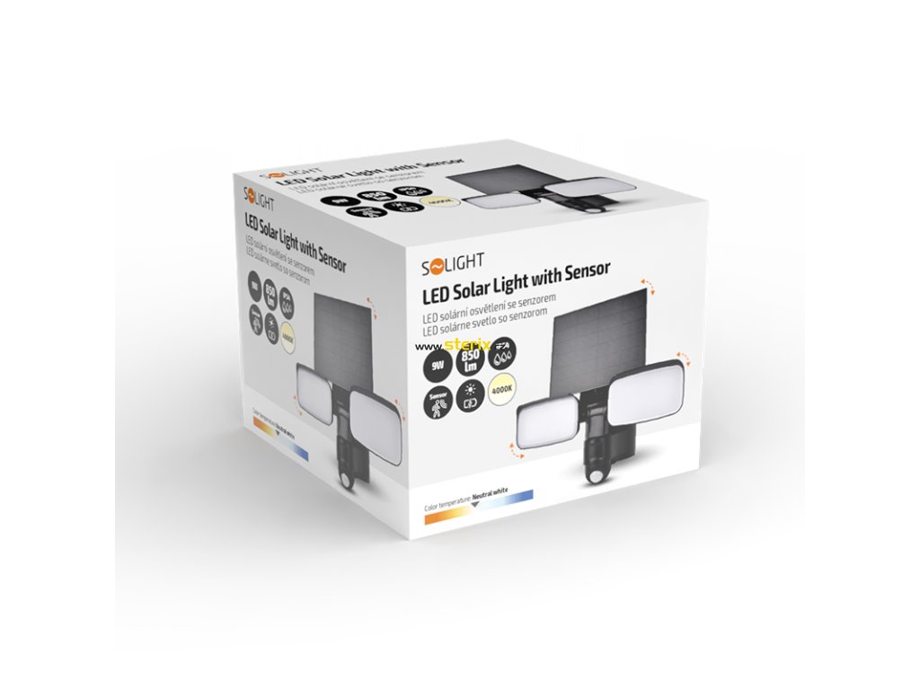 LED solární osvětlení se senzorem 9W 850lm 4000K Li-Ion IP54