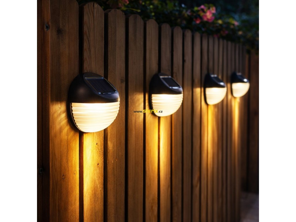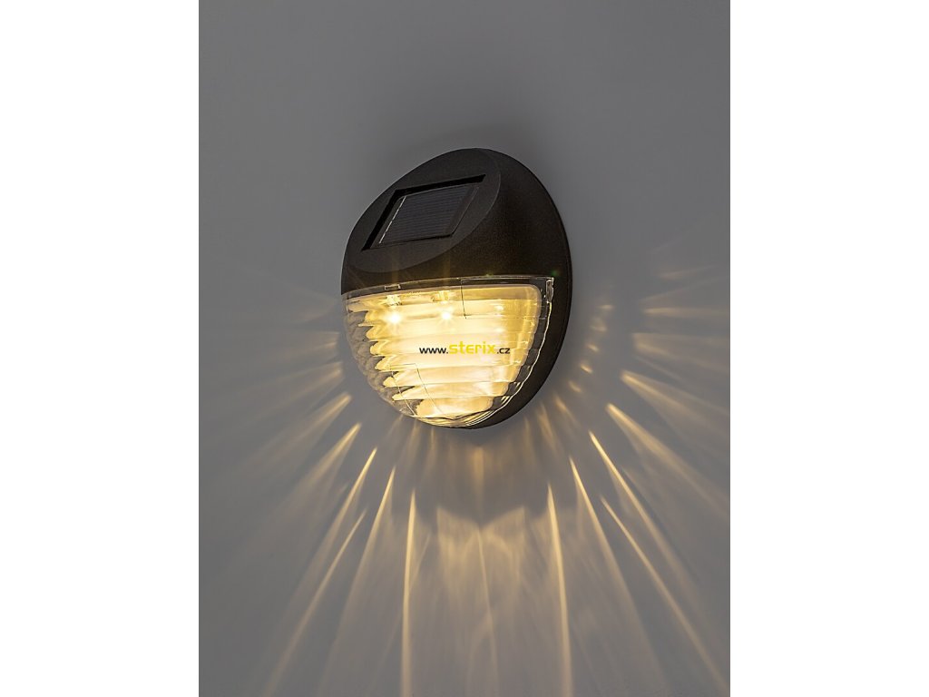 LERMOS LED solární lampa, sada 2 kusů, styl moderní, materiál plast, barva černá a čirá, příkon 0,06W, barva světla teplá bílá (3000 K), svítivost 3 lumeny, provozní napětí DC 1.2V, světelný senzor, stupeň krytí - IP44 (umístění terasa, zahrada, zeď domu)...