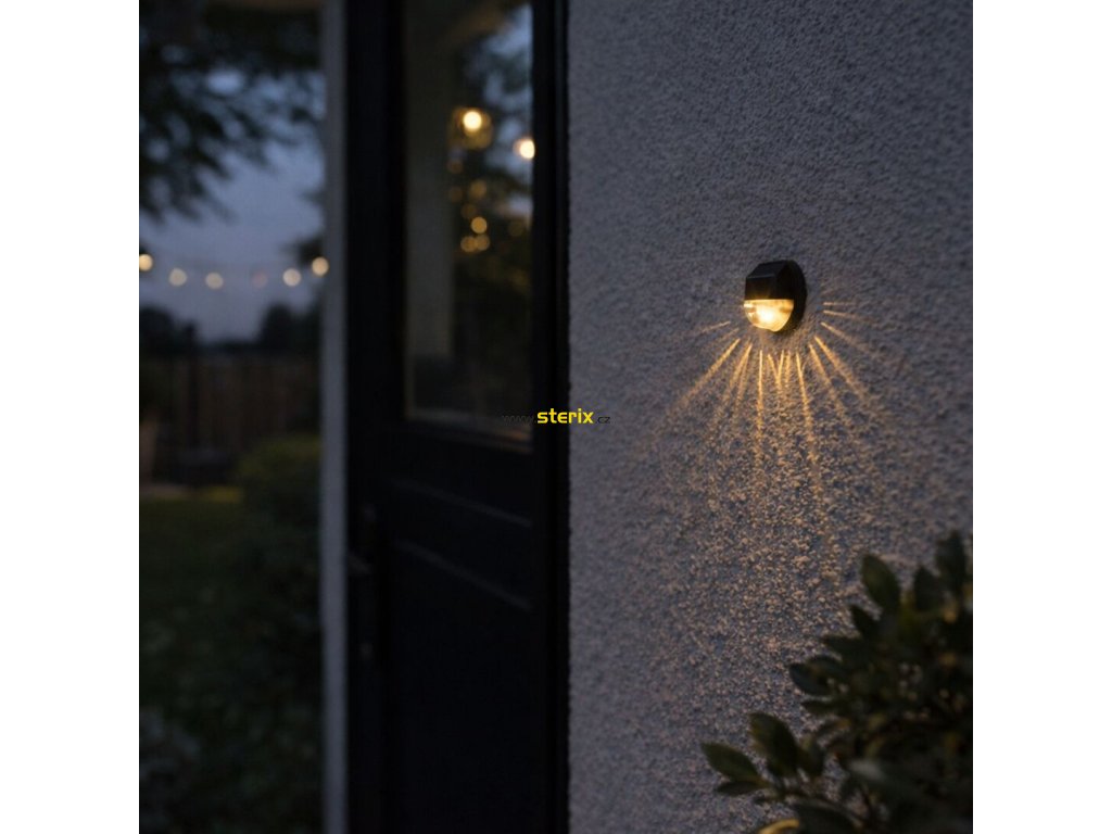 Solární venkovní nástěnné svítidlo Rábalux Lermos se svým moderním, polokulovitým designem a černým plastovým tělem představuje elegantní doplněk fasády. Průsvitné, žebrované plastové stínidlo poskytuje příjemné, rozptýlené světlo, zatímco integrovaná LED dioda zajišťuje úsporný a spolehlivý provoz. Díky světelnému senzoru se lampa automaticky rozsvítí při setmění, ale pomocí nenápadného vypínače ji lze podle potřeby snadno zapnout či vypnout i ručně. Dodává se jako sada dvou kusů a díky bezdrátovému provedení se velmi snadno instaluje – ideální volba pro osvětlení vstupu, terasy, balkonu nebo venkovního schodiště. Odolné provedení vůči povětrnostním vlivům zajišťuje dlouhodobé použití ve venkovním prostředí, zatímco její moderní styl se nenápadně přizpůsobí jakémukoli okolí.