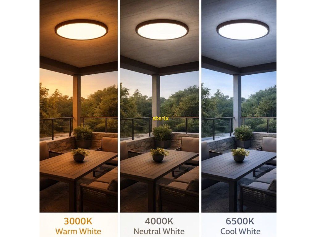 LAUTREC LED venkovní stropní svítidlo, styl funkční, materiál plast, barva hnědá a bílá, příkon 24W, barva světla CCT - variabilní (3000, 4000, 6500 K), svítivost 2030 lumenů, provozní napětí AC-230V/50Hz, stupeň krytí - IP44 (umístění terasa, zeď domu)...