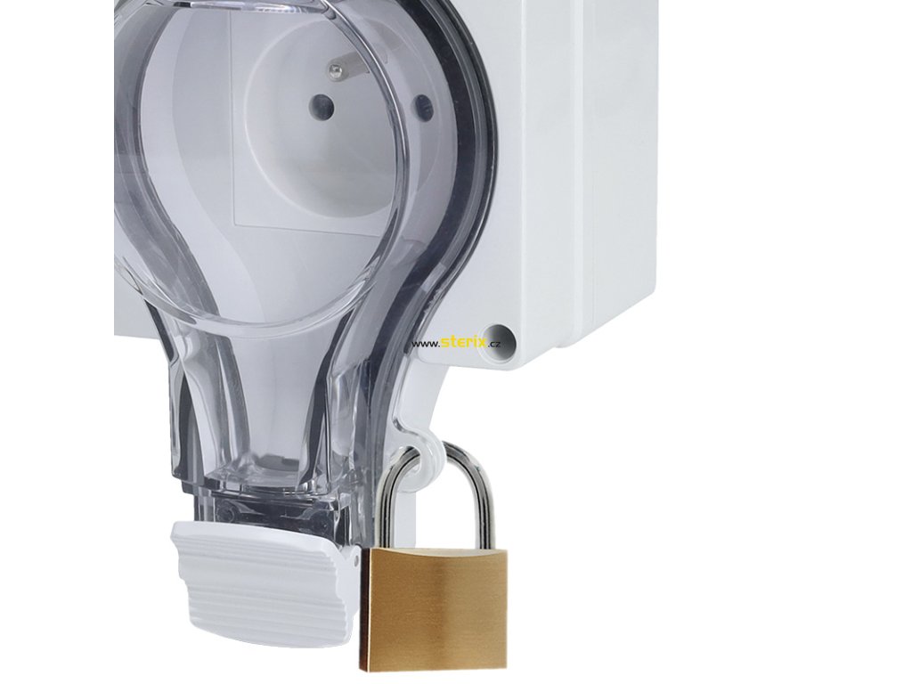 Víka zásuvek lze indiviudálně uzamknout visacím zámkem, což chrání proti nechtěné manipulaci a zvyšuje bezpečnost. Prodloužený kryt chrání část kabelu a zároveň slouží i jako páka ke snadnějšímu uzavření víka. Gumové těsnění a zátky zajišťují dokonalé utěsnění proti vodě a prachu. Konstrukce je navržena tak, aby odolala intenzivním klimatickým podmínkám, to zajišťuje dlouhodobou spolehlivost a bezpečnost při používání.