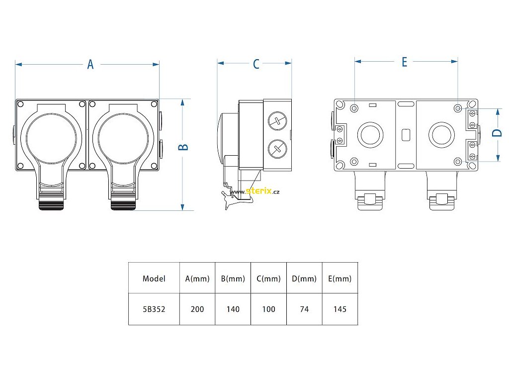 - zásuvka 2x 16A, max. 3680W, šroubovací svorky