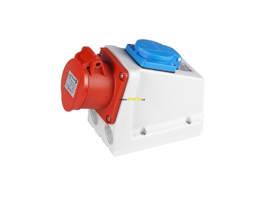 Praktická kombinovaná nástěnná zásuvka 16A / 400V (4pólová) s integrovanou francouzskou zásuvkou 230V nabízí univerzální řešení pro připojení různých typů zařízení v průmyslových provozech, dílnách i technických instalacích.
