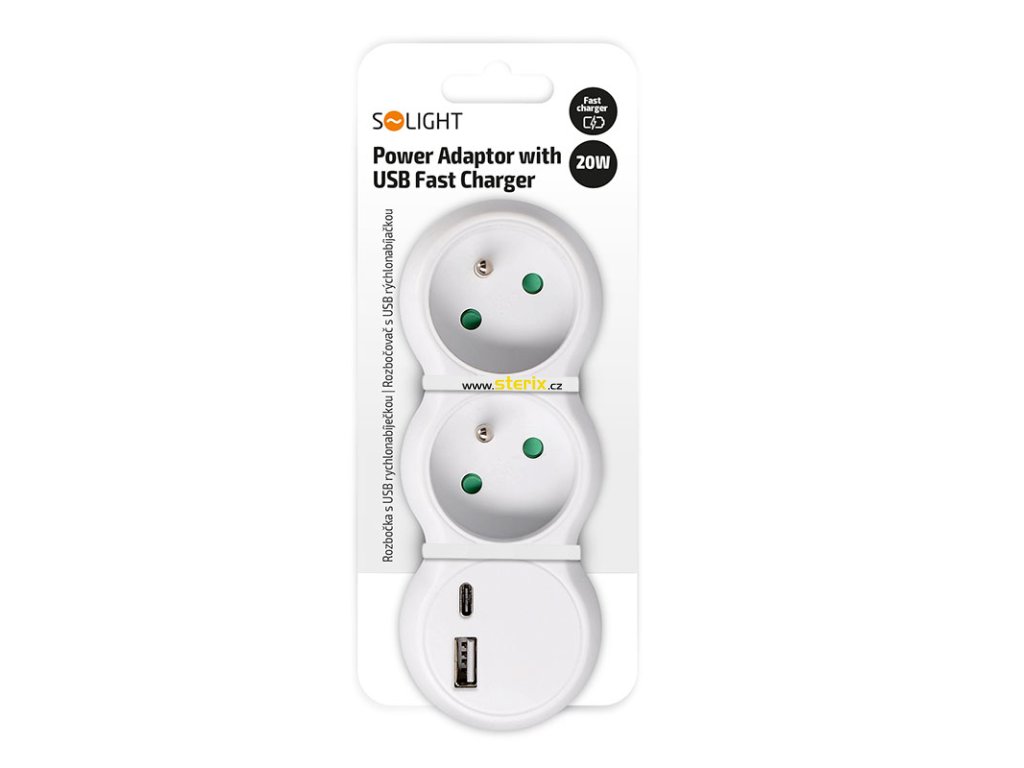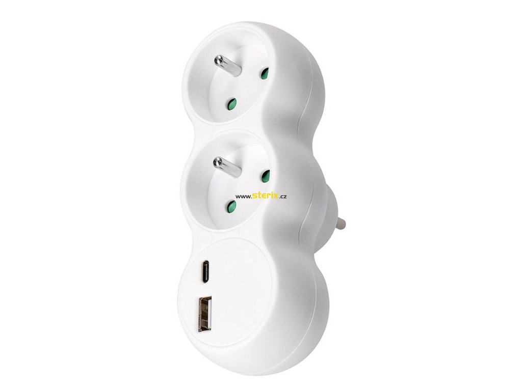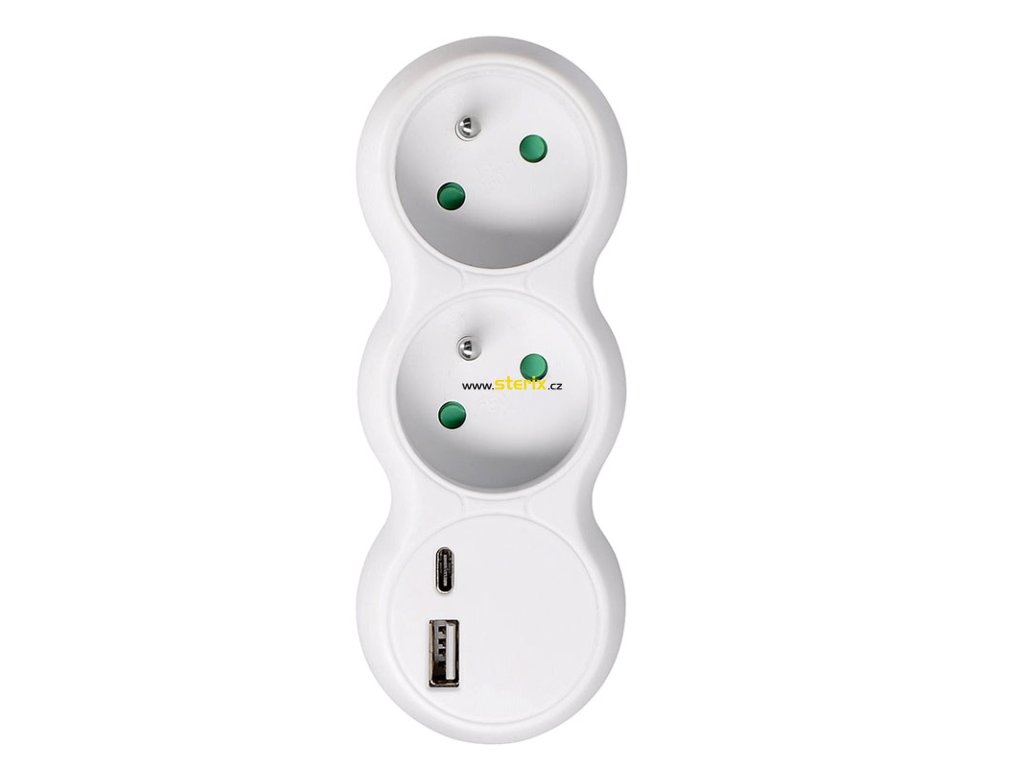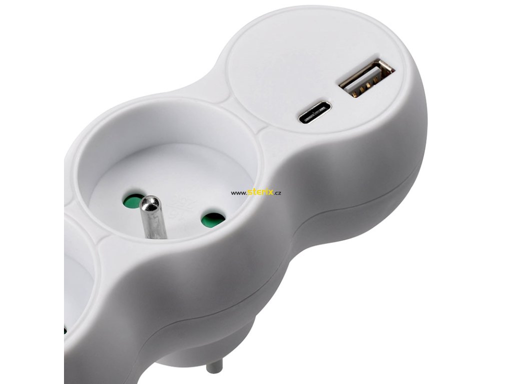 Rozbočka s USB A+C rychlonabíječkou 20W PD, 2 x 10A, bílá