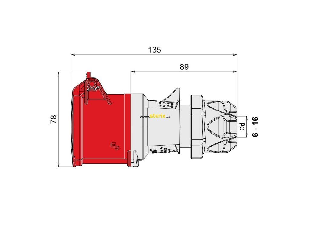 Robustní konstrukce z materiálu PA6 zajišťuje vysokou mechanickou odolnost a stabilní elektrický kontakt i při častém používání. Krytí IP44 chrání proti stříkající vodě a prachu, což umožňuje použití v běžných průmyslových a částečně venkovních podmínkách.