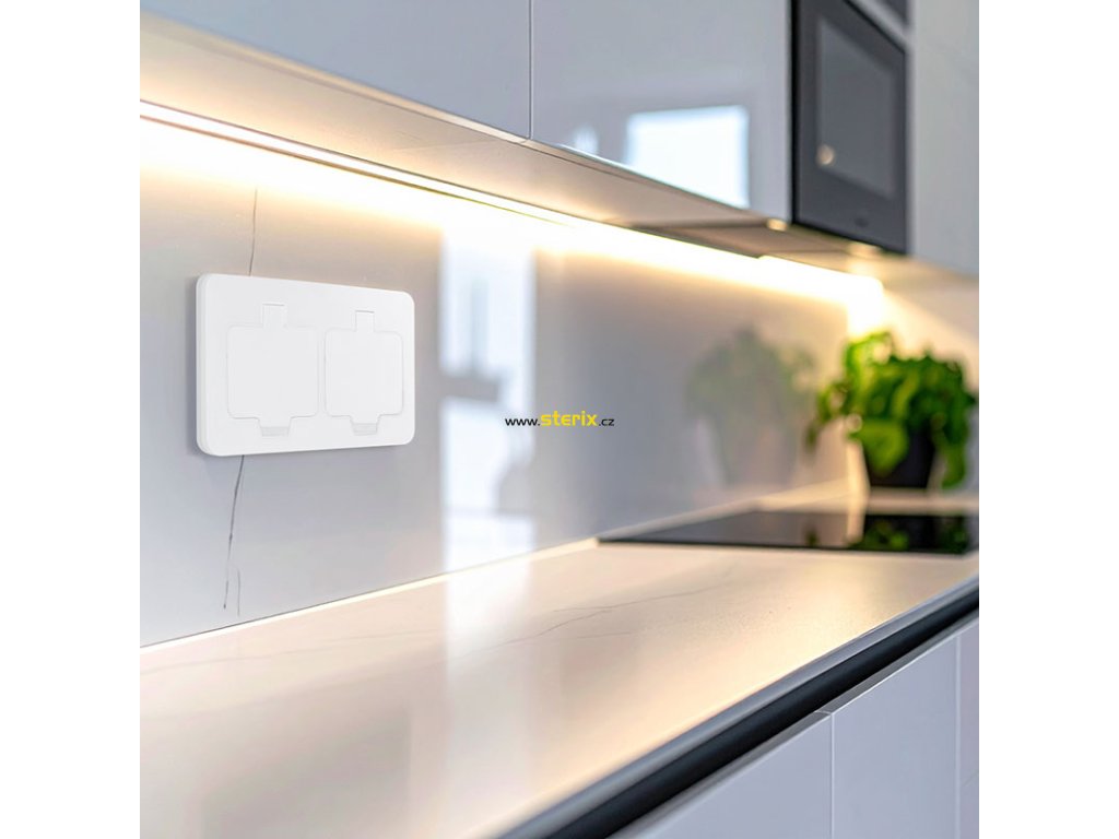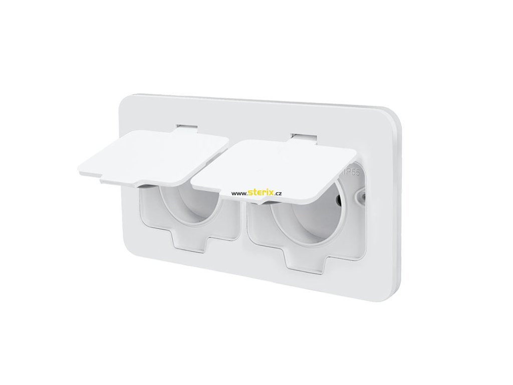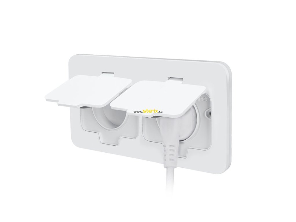 Zásuvka je opatřena dvojím gumovým těsněním, které brání pronikání vody a prachu pod vrchní kryt i pod víčka. Uzavřené pouzdro chrání vnitřní konstrukci před pronikáním vlhkosti z okolí. Krytí IP55 umožňuje použití i ve vlhkém nebo prašném prostředí, například v terasách, zahradních altánech, okolo bazénů či dílnách, garážích nebo chodbách. Bez problémů snese mokré čištění, ať už strojové nebo manuální. Spolehlivé fungování je zachováno i při pravidelném používání.